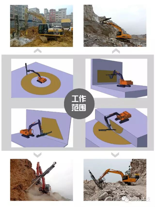 挖机钻115A得益于挖掘机良好的机动性能和宽广的作业半径,使得凿岩作业更加高效。