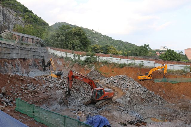 直接采用炮锤打简单、方便,但效率低,遇到大体积的岩石,30吨的挖掘机一天抠不出20立方岩石,效率跟不上,而且耗费很大生产成本。